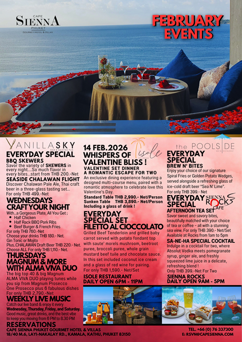 Cape Sienna's architecture and embracement of style attracts an exciting mix of customers who demand affordable style and service in a new and unexpected location along the Millionaire's Mile of Phuket. Do not miss the opportunity to discover one of the most romantic hotels in Asia and book your stay on the official website of the Cape Sienna Phuket Gourmet Hotel & Villas at the best price.